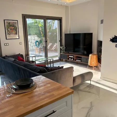 La 5 Km To Alacati, Luxury Villa With Garden And Pool Çeşme, situada a 20 minutos a pie de Erythrai Antique City, cuenta con una terraza con vistas al mar.